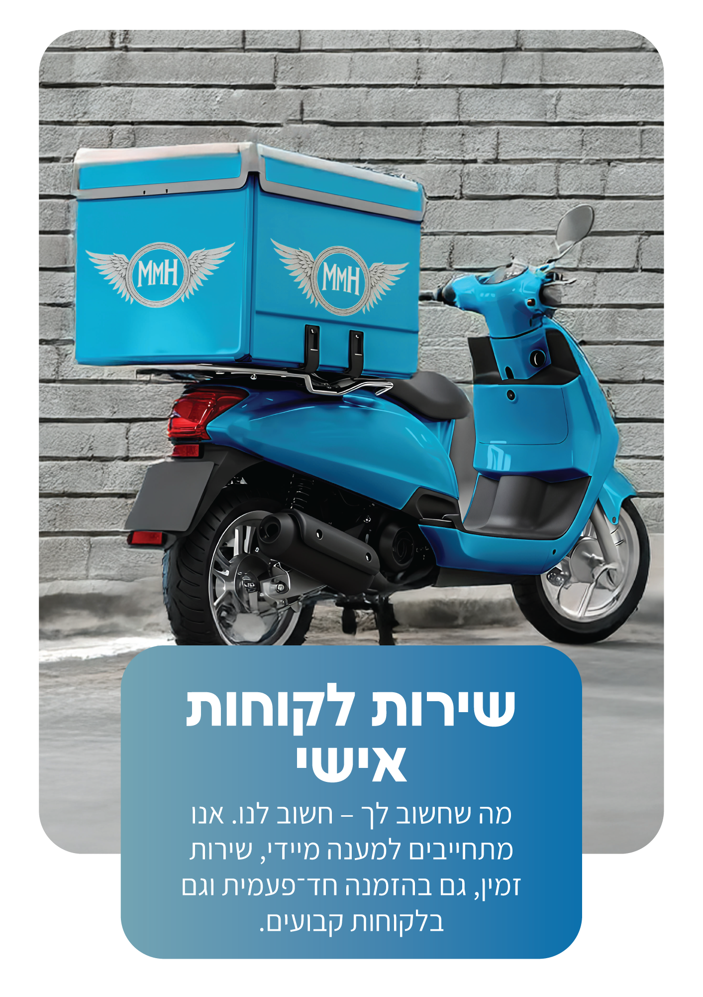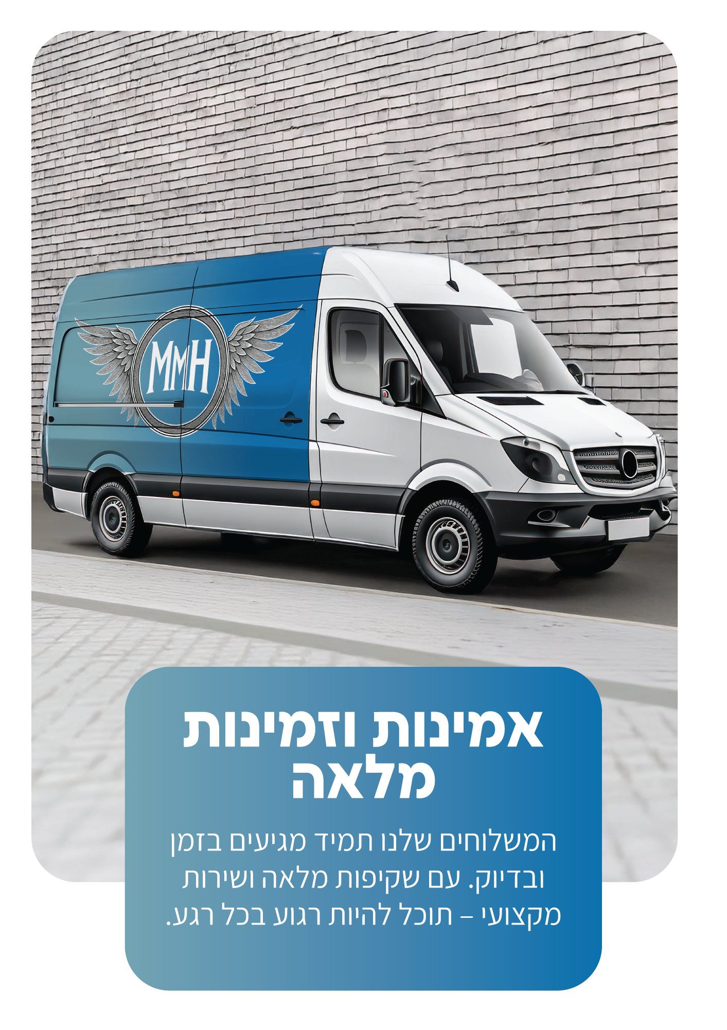 M.M.H היא חברת שליחויות מתקדמת המספקת שירותי שילוח מהיר, מקצועי וגמיש בפריסה ארצית.
